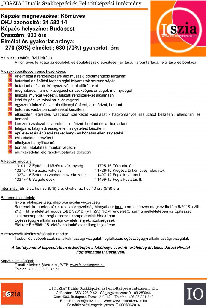 Ha kérdése van, intézményünk kollégái rendelkezésére állnak minden hétköznap 8:00-16:30-ig. Elérhetők az alábbi telefonszámon: 06-37-301-649. OKJ képzésekkel, OKJ tanfolyamokkal, Német és Angol nyelvtanfolyamokkal, Nyelvvizsgával kapcsolatosan, minden nap 0-24 óráig kérhet írásos tájékoztatót az alábbi e-mail címen: kepzes@ioszia.hu